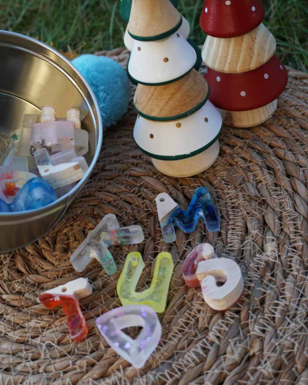 Ogni lettera ha un buco che la trasforma: da elemento per imparare l'alfabeto a pendente da appendere, da pezzo per il gioco dell'infilo a decorazione per l'albero.