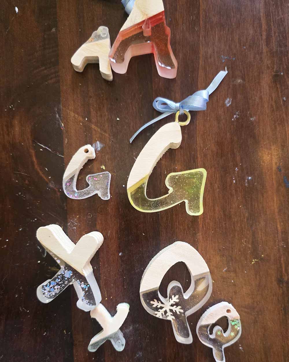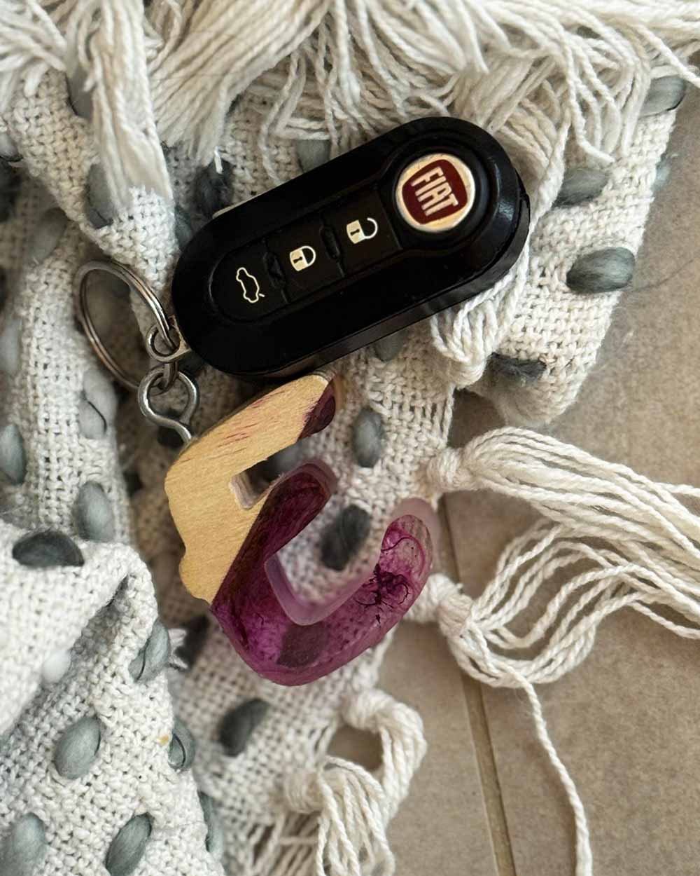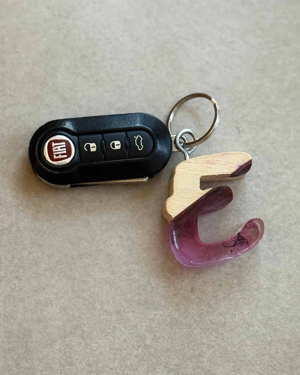 Portachiavi a lettera in legno e resina.